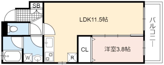 | 間取り詳細 | LDK 11.5畳 、 洋室 3.8畳 |