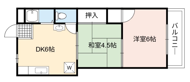| 間取り詳細 | DK 6畳 、 洋室 6畳 、 和室 4.5畳 |