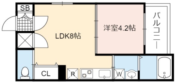 | 間取り詳細 | LDK 8畳 、 洋室 4.2畳 |