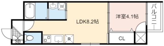 | 間取り詳細 | LDK 8.2畳 、 洋室 4.1畳 |