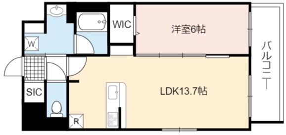 | 間取り詳細 | LDK 13.7畳 、 洋室 6畳 |