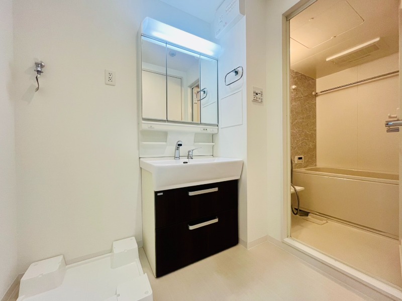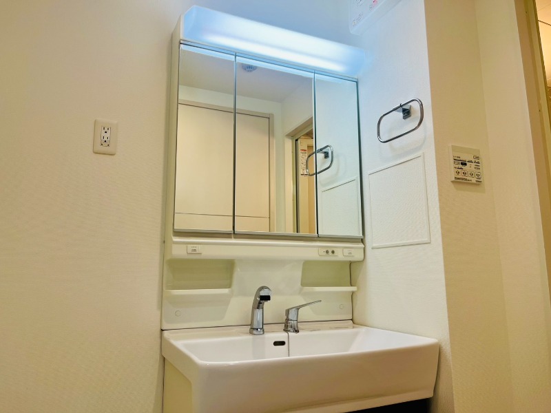 オートロックと宅配ボックスで日常に安心と便利を。角部屋のひらきに、バストイレ別・追い焚き・浴室乾燥機・温水洗浄便座・シャンプードレッサーが整う、頼もしさの詰まった一室です。