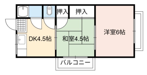 | 間取り詳細 | DK 4.5畳 、 洋室 6畳 、 和室 4.5畳 |