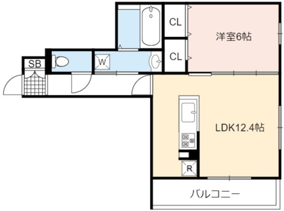 | 間取り詳細 | LDK 12.4畳 、 洋室 6畳 |