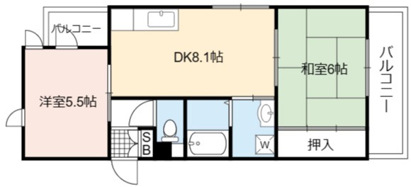 | 間取り詳細 | DK 8.1畳 、 和室 6畳 、 洋室 5.5畳 |
