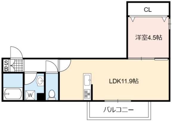 | 間取り詳細 | LDK 11.9畳 、 洋室 4.5畳 |
