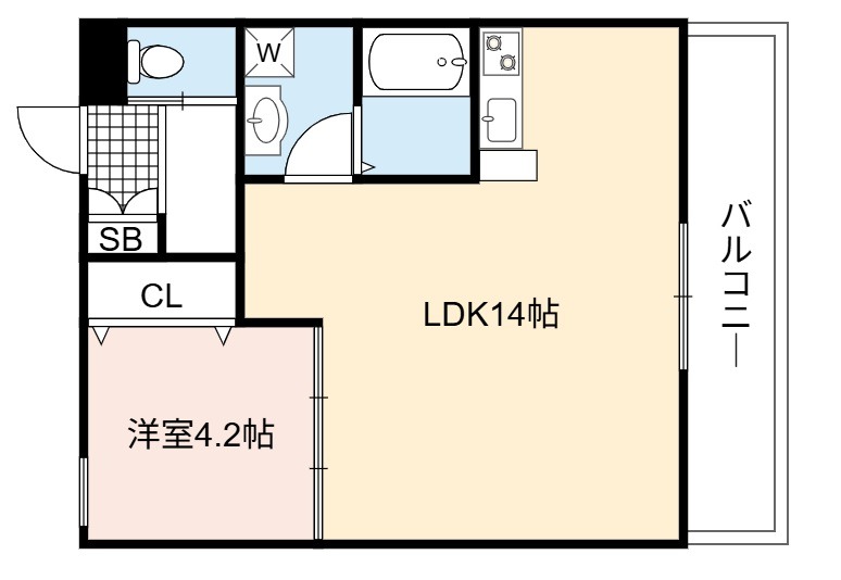 | 間取り詳細 | LDK 14畳 、 洋室 4.2畳 |