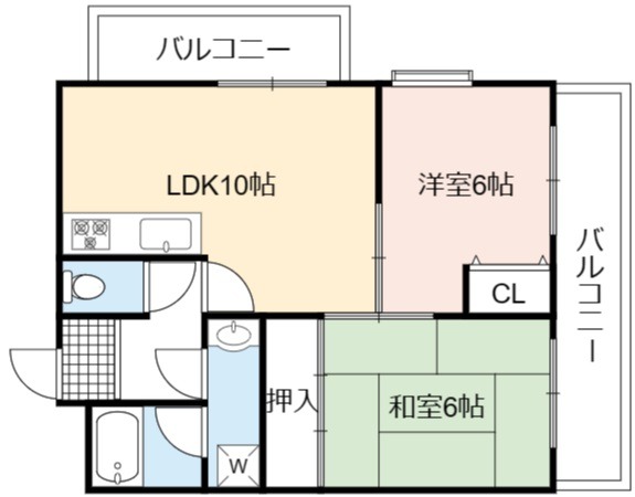 | 間取り詳細 | LDK 10畳 、 洋室 6畳 、 和室 6畳 |