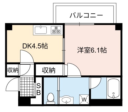 | 間取り詳細 | DK 4.5畳 、 洋室 6.1畳 |