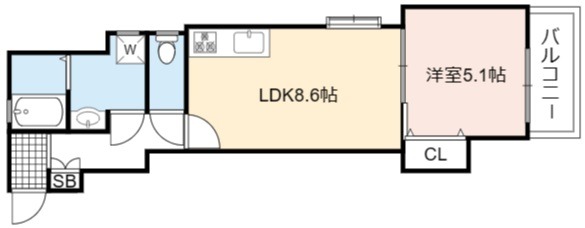 | 間取り詳細 | LDK 8.6畳 、 洋室 5.1畳 |