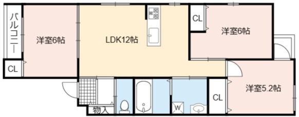| 間取り詳細 | LDK 12畳 、 洋室 6畳 、 洋室 6畳 、 洋室 5.2畳 |