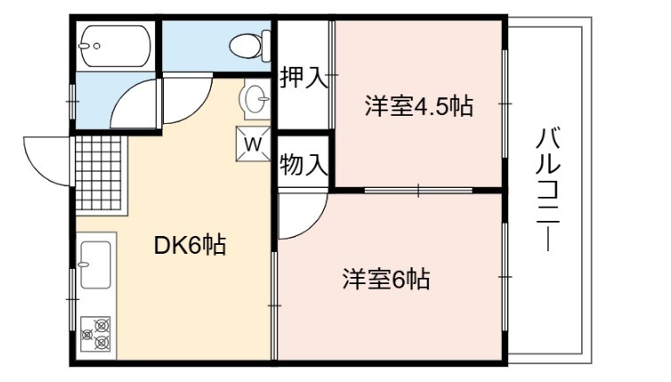| 間取り詳細 | DK 6畳 、 洋室 6畳 、 洋室 4.5畳 |