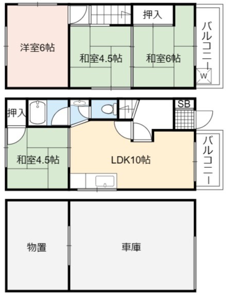 | 間取り詳細 | LDK 10畳 、 洋室 6畳 、 和室 6畳 、 和室 4.5畳 、 和室 4.5畳 |