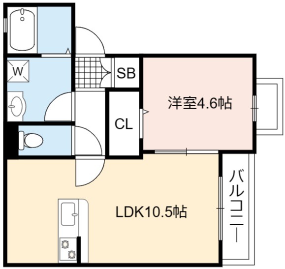 | 間取り詳細 | LDK 10.5畳 、 洋室 4.6畳 |