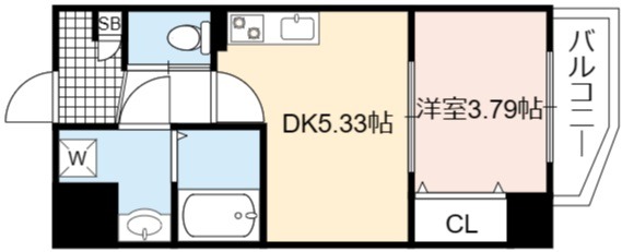 | 間取り詳細 | DK 5.33畳 、 洋室 3.79畳 |
