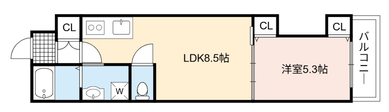 | 間取り詳細 | LDK 8.5畳 、 洋室 5.3畳 |