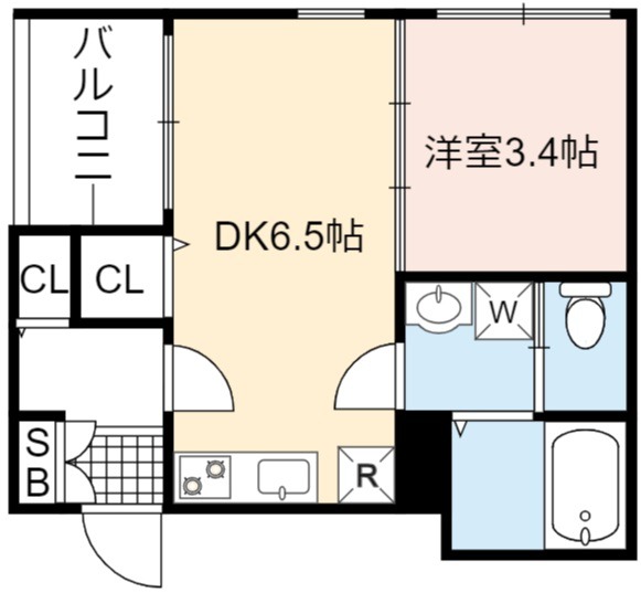 | 間取り詳細 | DK 6.5畳 、 洋室 3.4畳 |
