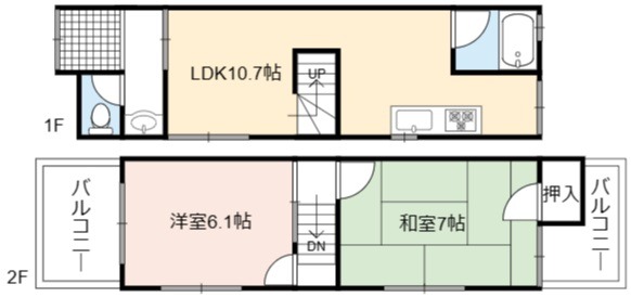 | 間取り詳細 | LDK 10.7畳 、 和室 7畳 、 洋室 6.1畳 |