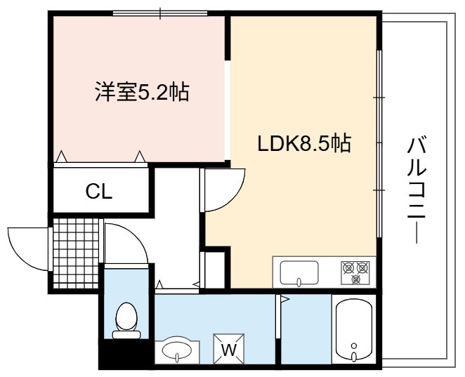 | 間取り詳細 | LDK 8.5畳 、 洋室 5.2畳 |