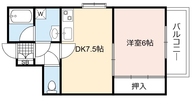 | 間取り詳細 | DK 7.5畳 、 洋室 6畳 |