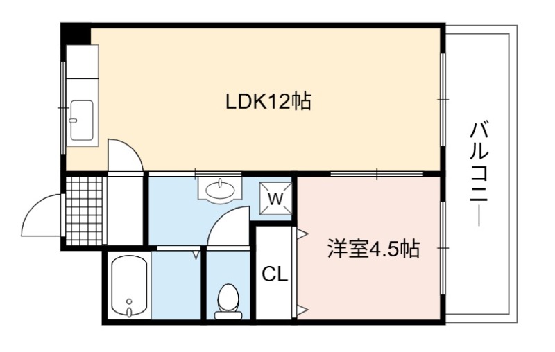 | 間取り詳細 | LDK 12畳 、 洋室 4.5畳 |