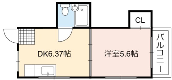 | 間取り詳細 | DK 6.37畳 、 洋室 5.6畳 |