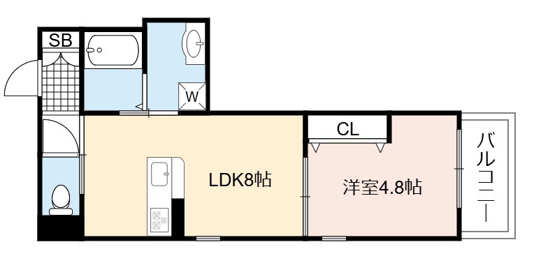| 間取り詳細 | LDK 8畳 、 洋室 4.8畳 |