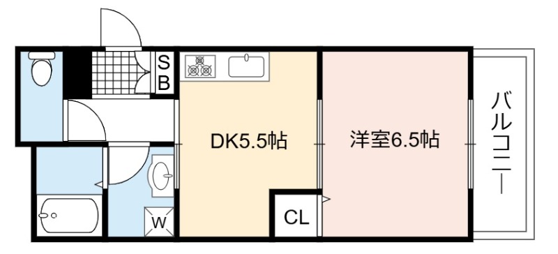 | 間取り詳細 | DK 5.5畳 、 洋室 6.5畳 |