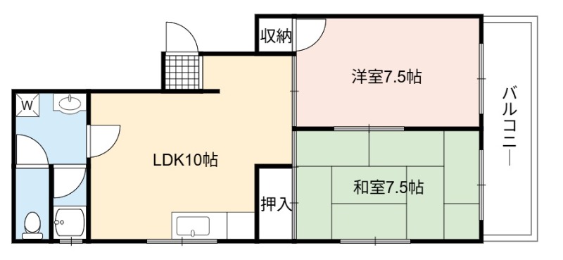 | 間取り詳細 | LDK 10畳 、 洋室 7.5畳 、 和室 7.5畳 |