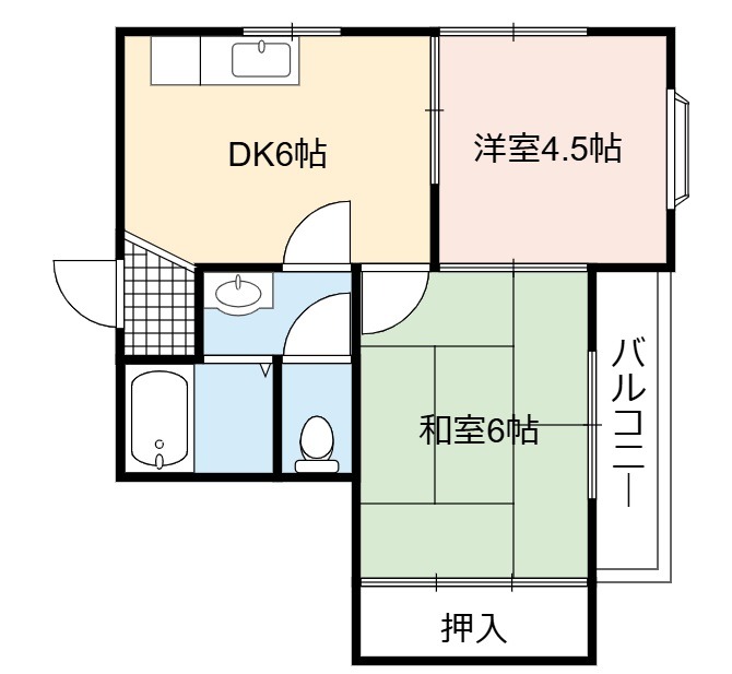 | 間取り詳細 | DK 6畳 、 和室 6畳 、 洋室 4.5畳 |
