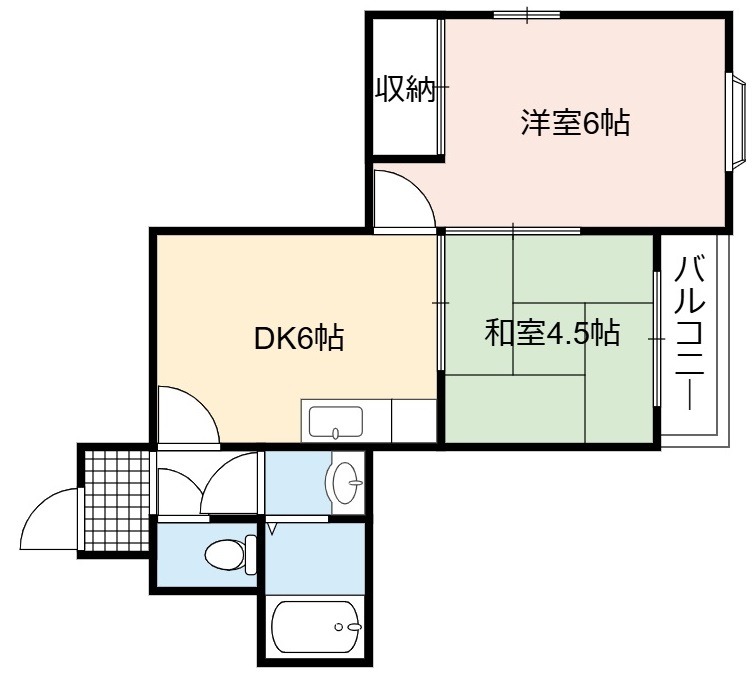 | 間取り詳細 | DK 6畳 、 洋室 6畳 、 和室 4.5畳 |