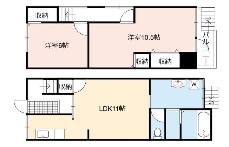 | 間取り詳細 | LDK 11畳 、 洋室 10.5畳 、 洋室 6畳 |
