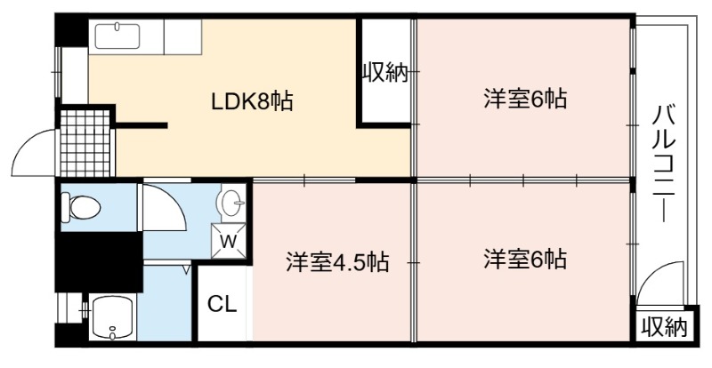 | 間取り詳細 | LDK 8畳 、 洋室 6畳 、 洋室 6畳 、 洋室 4.5畳 |