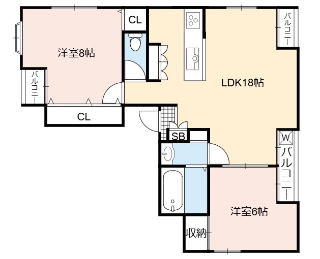 | 間取り詳細 | LDK 18畳 、 洋室 8畳 、 洋室 6畳 |