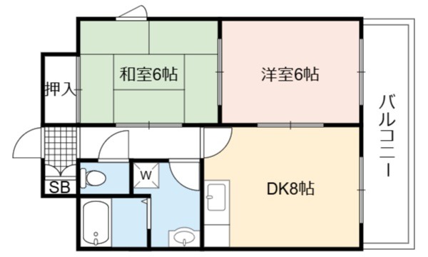 | 間取り詳細 | DK 8畳 、 洋室 6畳 、 和室 6畳 |