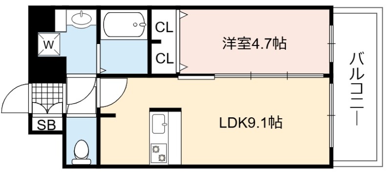 | 間取り詳細 | LDK 9.1畳 、 洋室 4.7畳 |