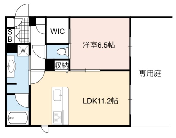 | 間取り詳細 | LDK 11.2畳 、 洋室 6.5畳 |