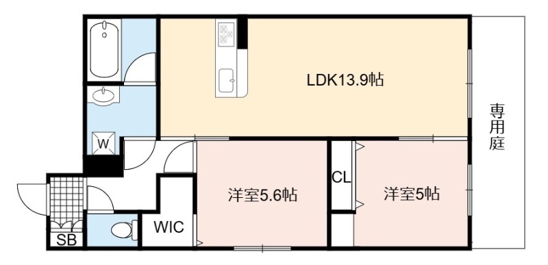 | 間取り詳細 | LDK 13.9畳 、 洋室 5.6畳 、 洋室 5畳 |
