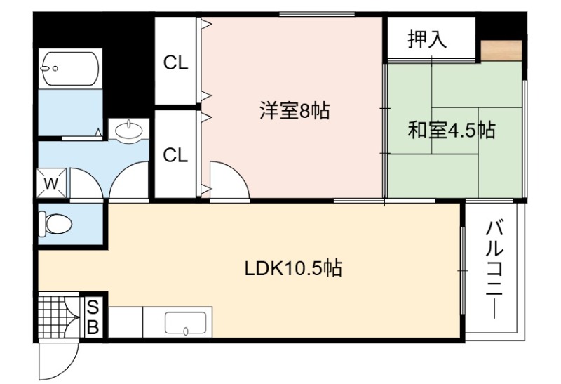 | 間取り詳細 | LDK 10.5畳 、 洋室 8畳 、 和室 4.5畳 |