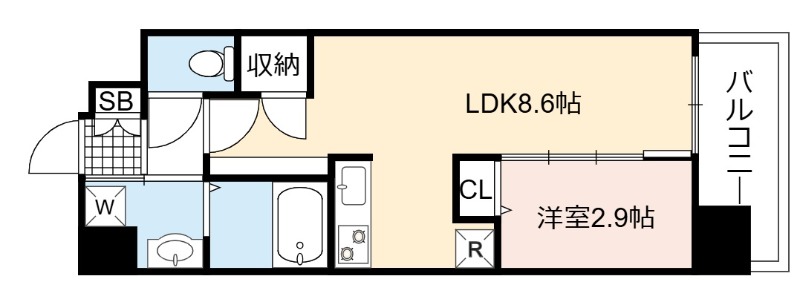 | 間取り詳細 | LDK 8.6畳 、 洋室 2.9畳 |