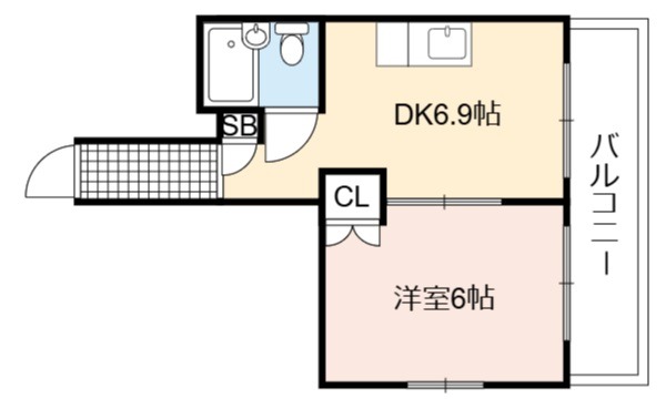 | 間取り詳細 | DK 6.9畳 、 洋室 6畳 |