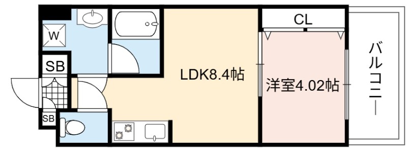 | 間取り詳細 | LDK 8.4畳 、 洋室 4.02畳 |