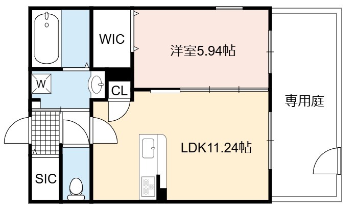 | 間取り詳細 | LDK 11.24畳 、 洋室 5.94畳 |