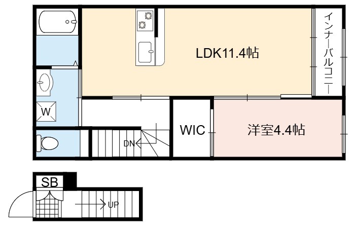 | 間取り詳細 | LDK 11.4畳 、 洋室 4.4畳 |