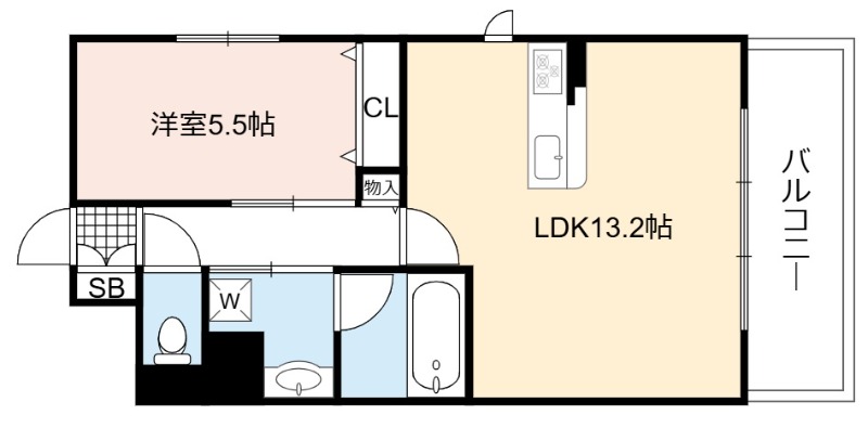 | 間取り詳細 | LDK 13.2畳 、 洋室 5.5畳 |