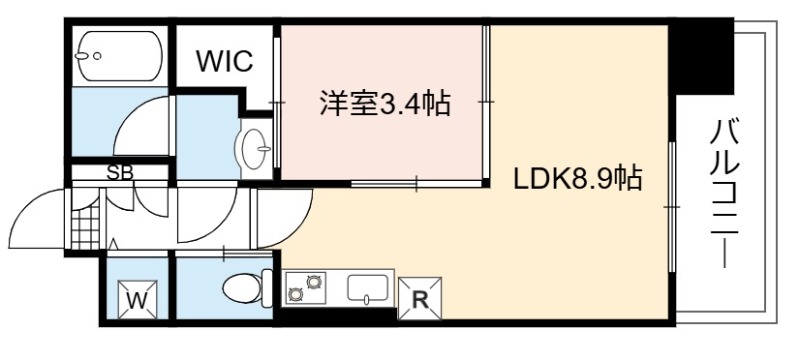 | 間取り詳細 | LDK 8.9畳 、 洋室 3.4畳 |