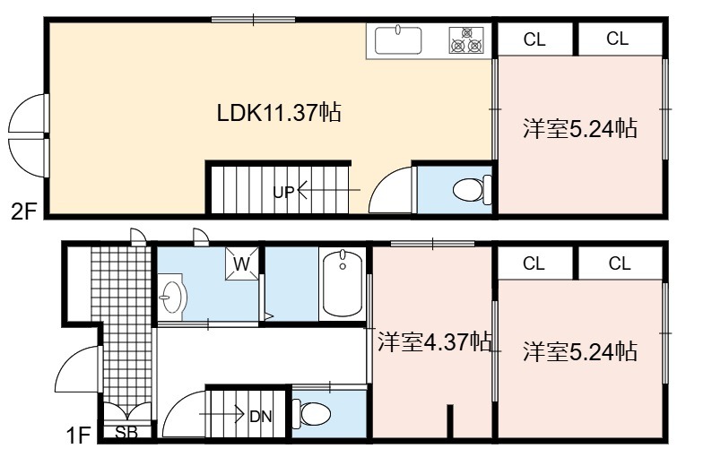 | 間取り詳細 | LDK 11.37畳 、 洋室 5.24畳 、 洋室 5.24畳 、 洋室 4.37畳 |