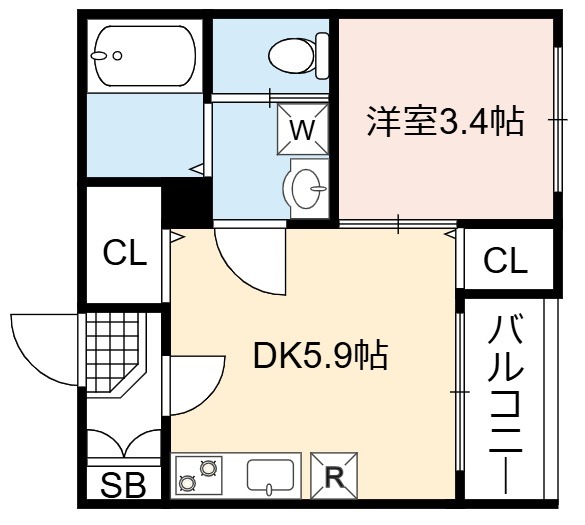 | 間取り詳細 | DK 5.9畳 、 洋室 3.4畳 |
