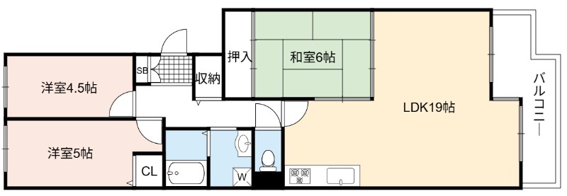 | 間取り詳細 | LDK 19畳 、 和室 6畳 、 洋室 5畳 、 洋室 4.5畳 |