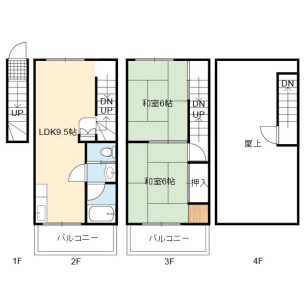 | 間取り詳細 | LDK 9.5畳 、 和室 6畳 、 和室 6畳 |